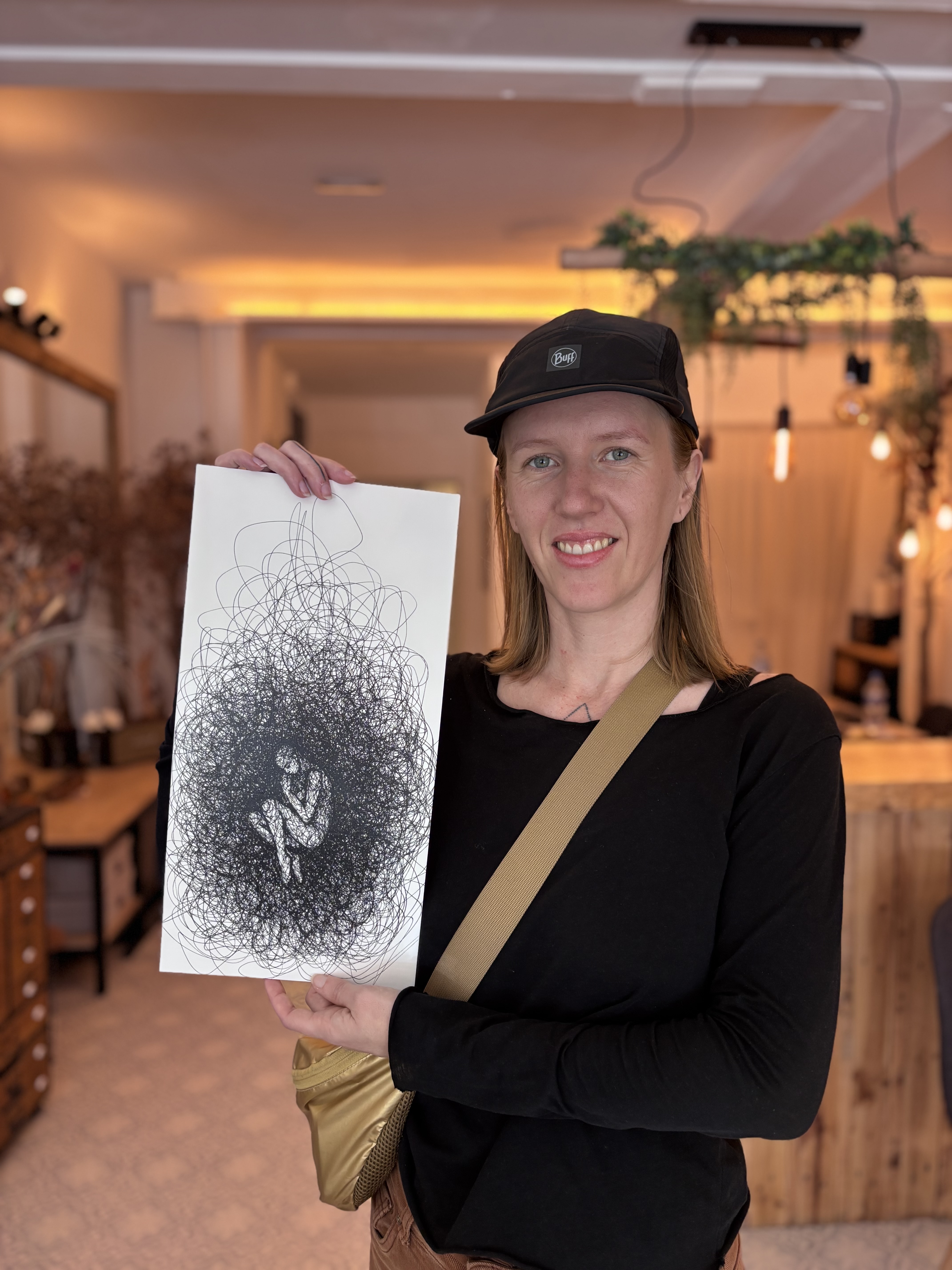 Safe in Chaos was drawn in a moment of deep resistance - when I almost numbed out, but chose to feel instead. What emerged was this: a raw, intimate, intuitive piece that now wants to live with you.